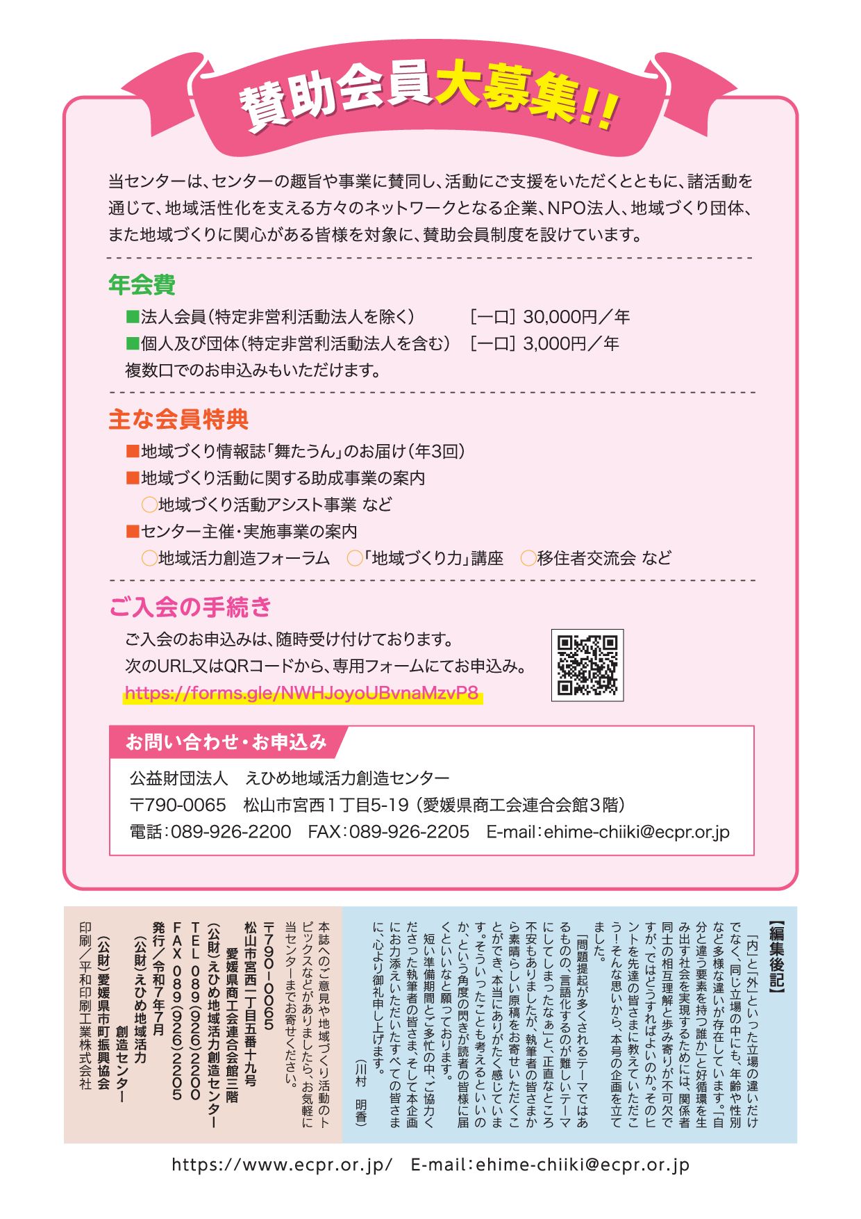 賛助会員募集